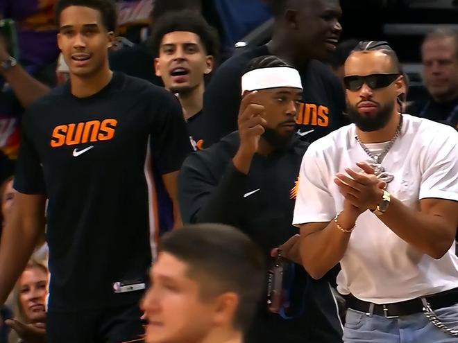 太阳队这边,布克出战18分钟,投篮8中4、三分2中2送出14分1篮板9助攻1抢断。