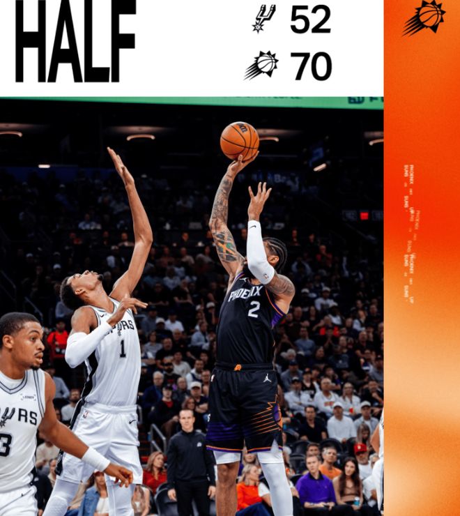 值得一提的是,太阳全队上半场三分15中11,命中率高达73.3%,马刺防守形同虚设。