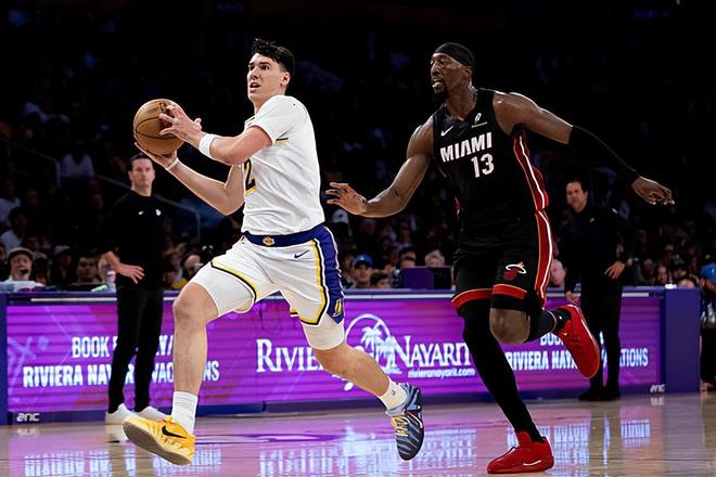 本场比赛中,湖人的锋线侧翼大将杰克-拉拉维亚(Jake LaRavia)的表现依然是非常抢眼的。拉拉维亚全场出场34分35秒,投篮13中10,三分线外3中1,罚球4中3,以超高的效率得到了25分8篮板3助攻4抢断的数据,还有1次失误和4次犯规,正负值为+8。拉拉维亚在进攻端又一次展现出了自己全面的得分能力,他能够利用各种方式完成得分,而且他还具备相当不错的传球能力和策应能力。拉拉维亚在进攻端的存在感非常高,他在球队两大后场球星身边也能够将自己的特点完全发挥出来,他在场上也能够帮助球队拉开空间。不仅如此,他在防守端的表现也是可圈可点的,他也是证明了自己有着超强的个人防守能力。拉拉维亚在本场比赛中再次打出了攻守兼备的表现,这也是球队能够取得胜利的重要因素。