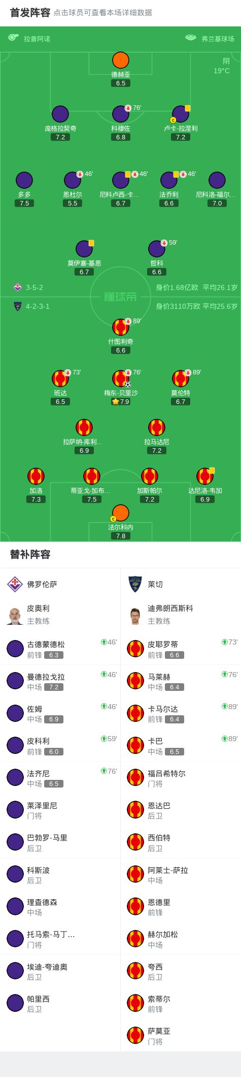 第23分钟,莫伦特传中,贝里沙后点端射破门,莱切1-0佛罗伦萨