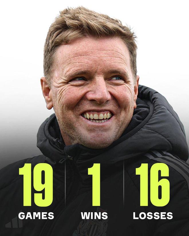 英超第12轮,纽卡斯尔联主场2-1击败曼城,这是埃迪-豪执教生涯首次带队英超战胜曼城。